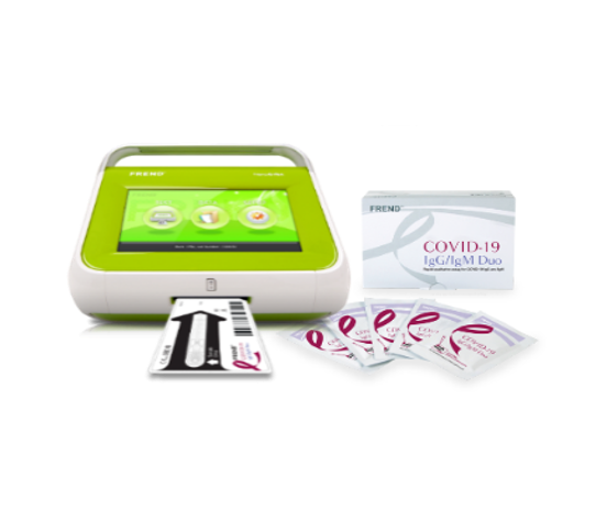 FRENDTM COVID-19 IgG/IgM Duo on vieritestilaite (POCT), jolla voidaan potilaan seerumista tai plasmasta tarkistaa, onko hän kehittänyt immuunivastetta SARS-CoV-2 vastaan. Oireiden jälkeen IgM alkaa kohota, ja 7 päivän päästä alkaa IgG-vasta-aineen tuotanto. FRENDTM laitetta suositellaankin käytettäväksi n. 8 päivän päästä sairastumisesta.